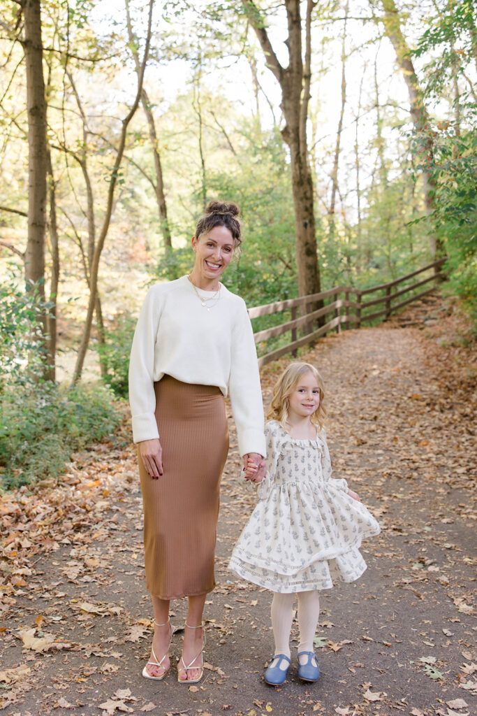 A few subtle patterns (like plaid, florals, or stripes) can add personality to your fall family photo outfits. Just be sure not to overdo it. If more than one person is wearing a pattern, vary the size and style so they don’t clash. And avoid logos or graphics, which can be distracting and take away from the classic feel of your portraits.